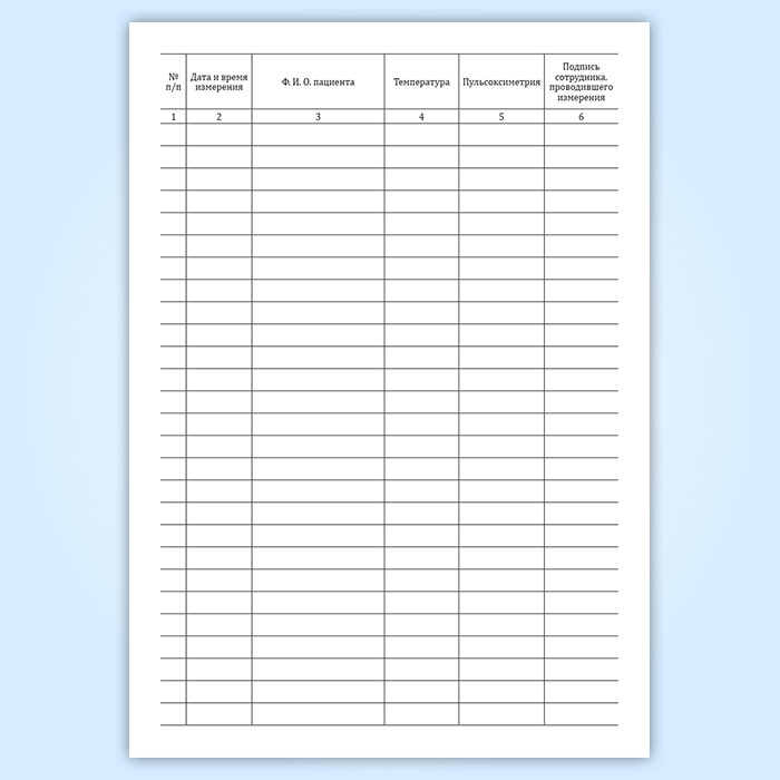 Журнал регистрации показаний пульсоксиметра и температуры тела пациентов в Твери купить