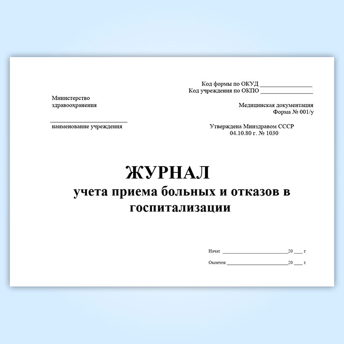 Журнал учета приема больных и отказов в госпитализации (форма 001/у) в Твери купить