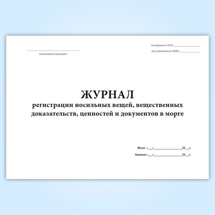 Журнал регистрации носильных вещей, вещественных доказательств, ценностей и документов в морге (форма 191/у) в Твери купить