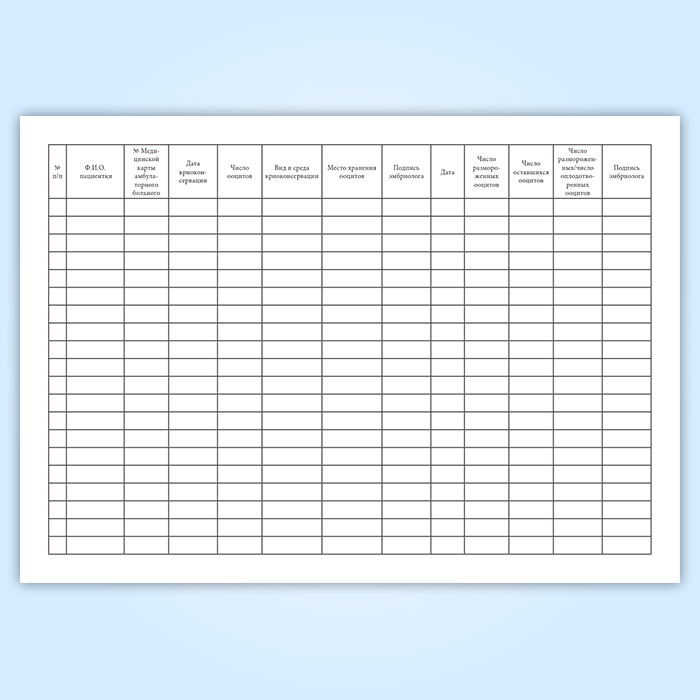 Журнал учета, хранения и использования криоконсервированных ооцитов пациенток в Твери купить
