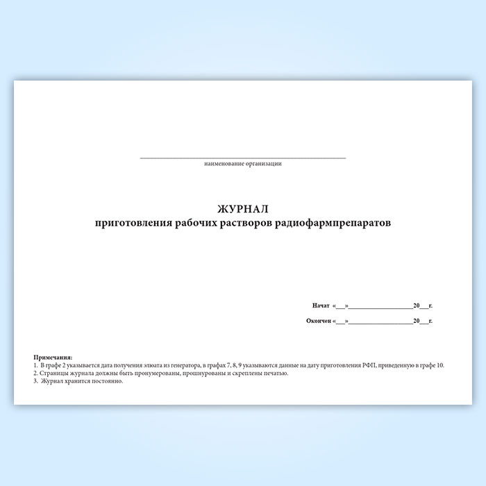Журнал приготовления рабочих растворов радиофармпрепаратов в Твери купить