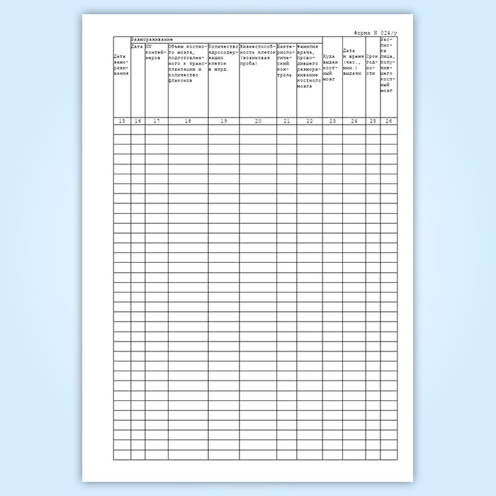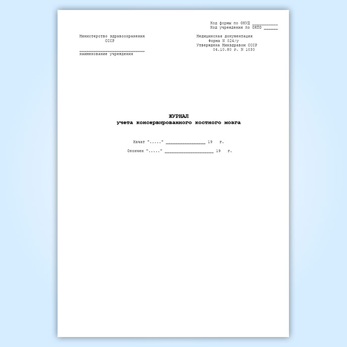 Журнал учета консервированного костного мозга (форма 024/у) в Твери купить