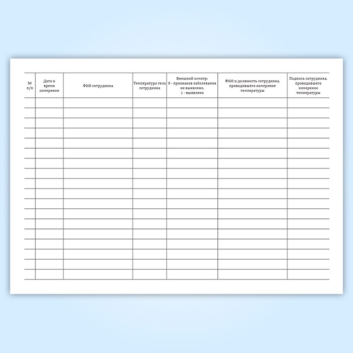 Журнал учета измерения температуры сотрудников (горизонтальный) в Твери купить