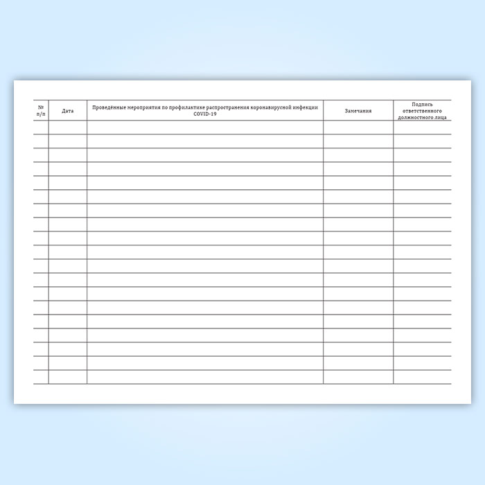 Журнал учета проведенных мероприятий по профилактике распространения коронавирусной инфекции COVID-19 в Твери купить