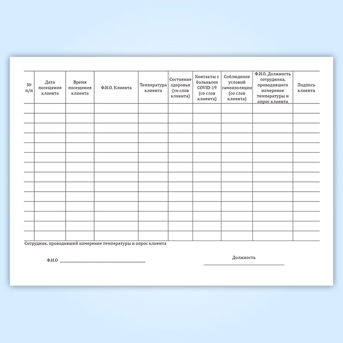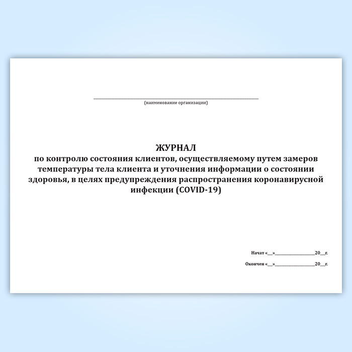 Журнал по контролю состояния клиентов, осуществляемому путем замеров температуры тела клиента и уточнения информации о состоянии здоровья, в целях предупреждения распространения коронавирусной инфекции (COVID-19) в Твери купить