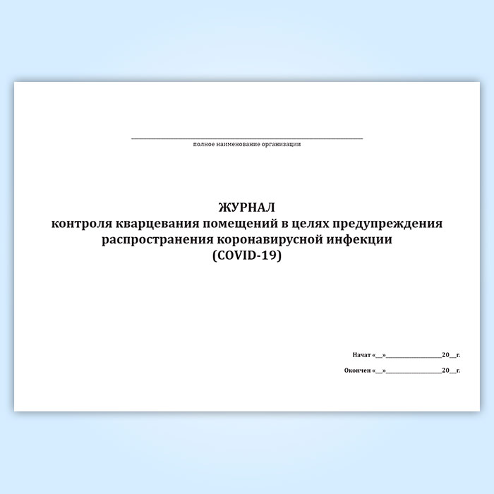 Журнал контроля кварцевания помещений в целях предупреждения распространения коронавирусной инфекции (COVID-19) в Твери купить