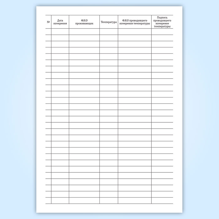 Журнал регистрации измерения температуры проживающих и служащих для профилактики коронавируса в Твери купить