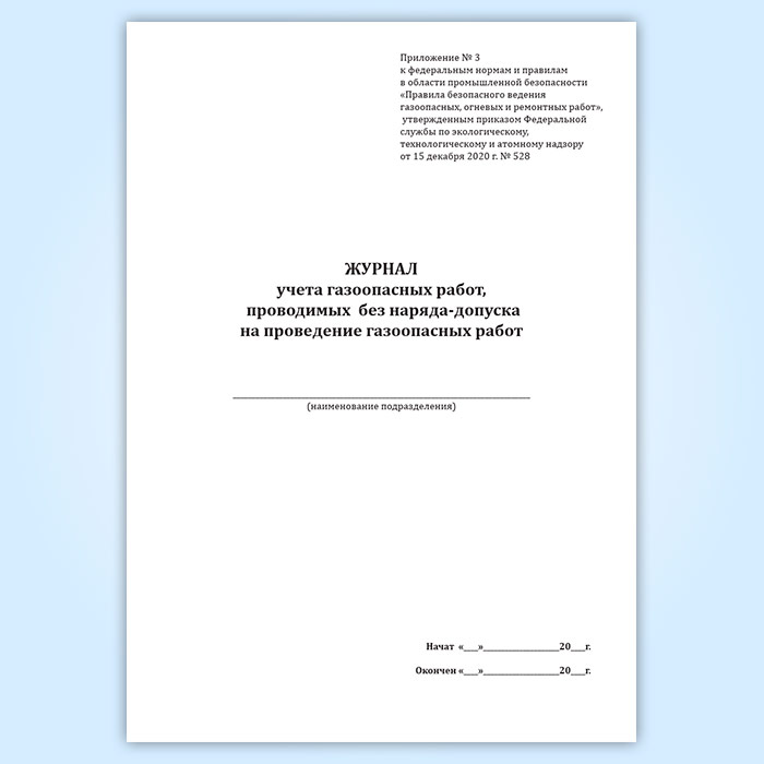 Журнал учета газоопасных работ, проводимых без наряда-допуска на проведение газоопасных работ в Твери купить