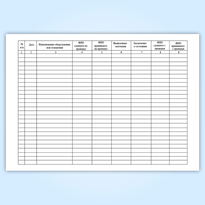 Журнал регистрации сдачи и выдачи оборудования и средств технического оснащения НАСФ на проверку в Твери купить