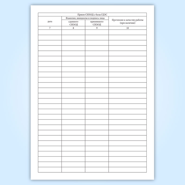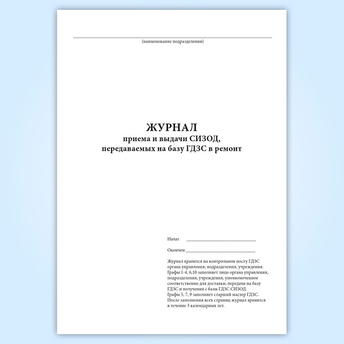 Журнал приема и выдачи СИЗОД, передаваемых на базу ГДЗС в ремонт в Твери купить
