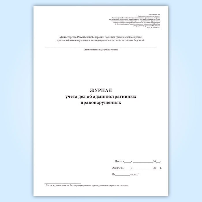 Журнал учета дел об административных правонарушениях (Приказ МЧС России от 14.06.2016 № 323) в Твери купить