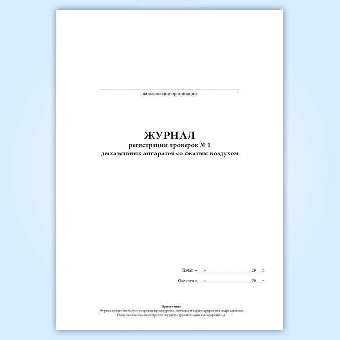 Журнал регистрации проверок N 1 дыхательных аппаратов со сжатым воздухом в Твери купить