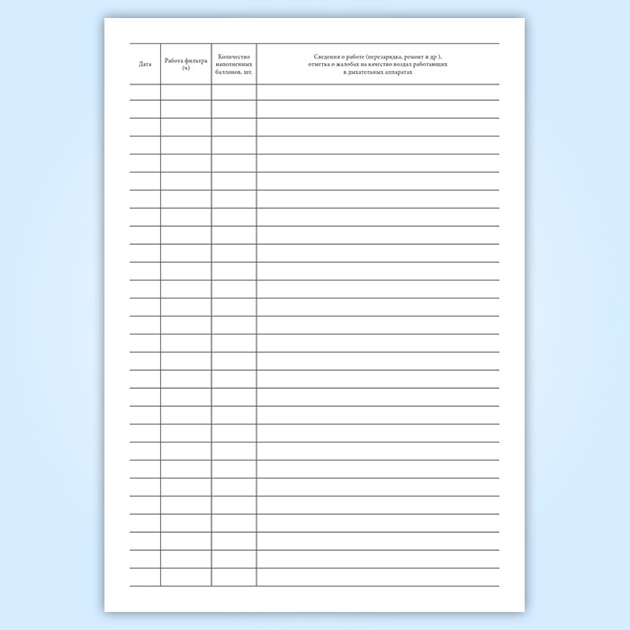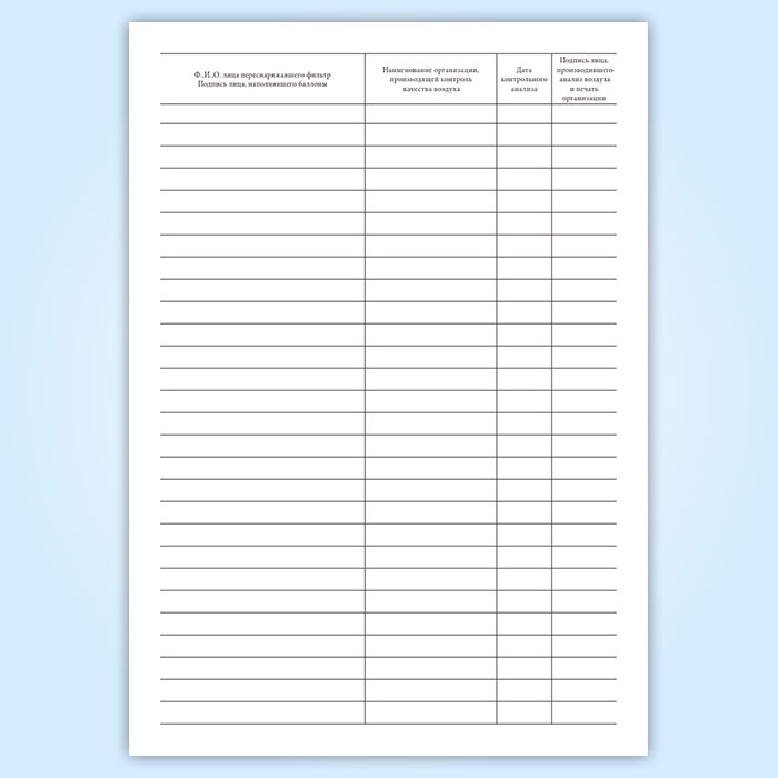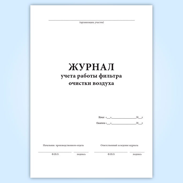 Журнал учета работы фильтра очистки воздуха в Твери купить