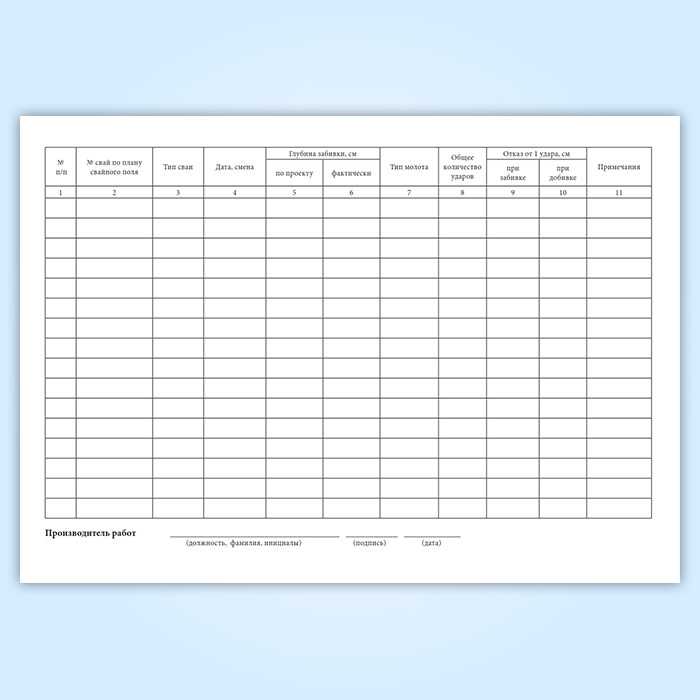 Журнал сводных ведомостей забитых свай в Твери купить