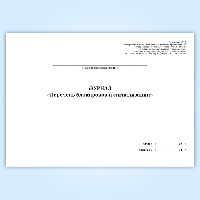Журнал «Перечень блокировок и сигнализации» в Твери купить