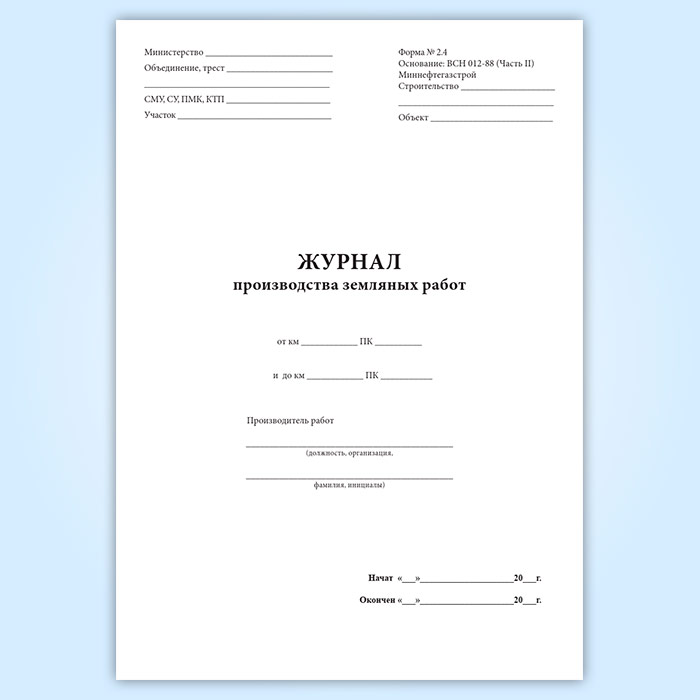Журнал производства земляных работ (форма 2.4) (трубопроводы) в Твери купить