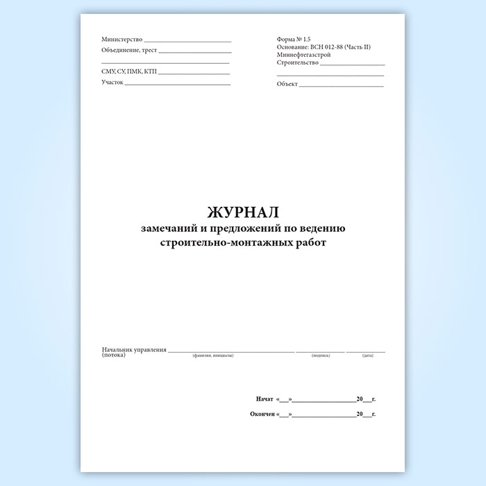 Журнал замечаний и предложений по ведению строительно-монтажных работ в Твери купить
