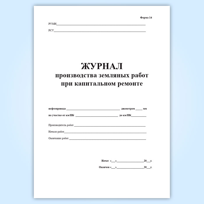 Журнал производства земляных работ при капитальном ремонте (форма 14) в Твери купить