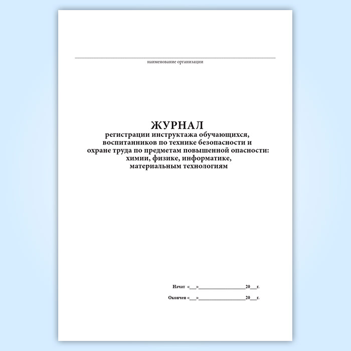 Журнал регистрации инструктажа обучающихся, воспитанников по технике безопасности и охране труда по предметам повышенной опасности: химии, физике, информатике, материальным технологиям в Твери купить