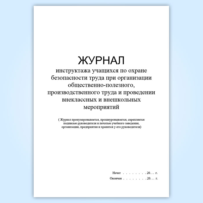 Журнал инструктажа учащихся по охране безопасности труда при организации общественно-полезного,производственного труда и проведении внеклассных и внешкольных мероприятий в Твери купить