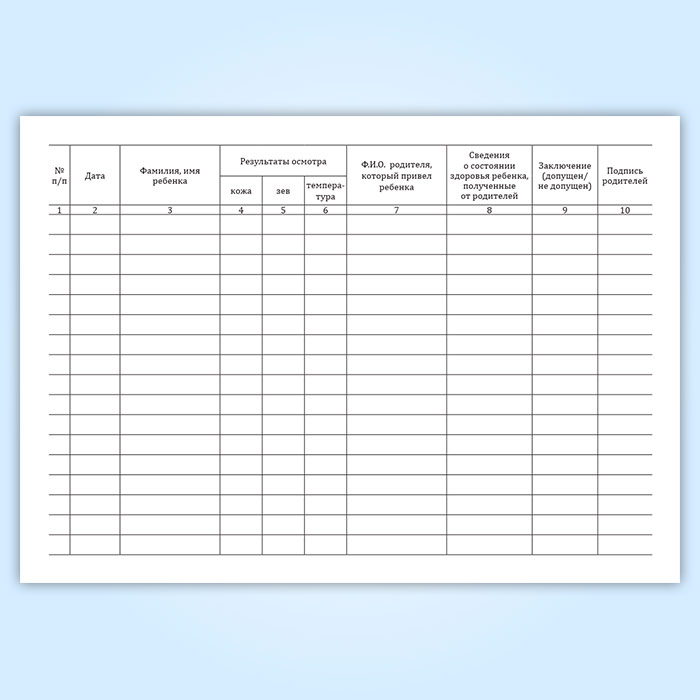 Журнал утреннего фильтра (осмотра) детей в Твери купить