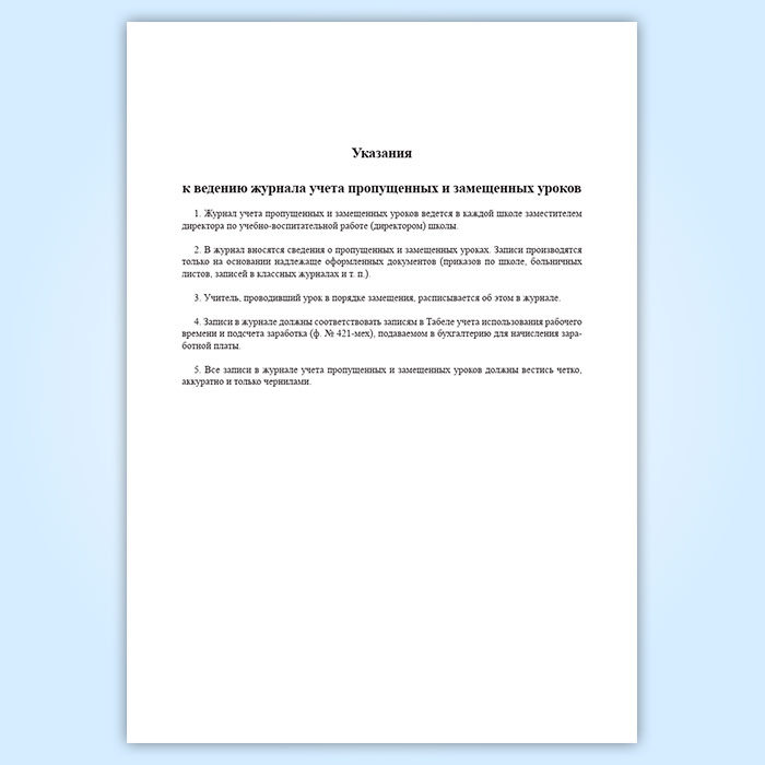 Журнал учета пропущенных и замещенных уроков в Твери купить