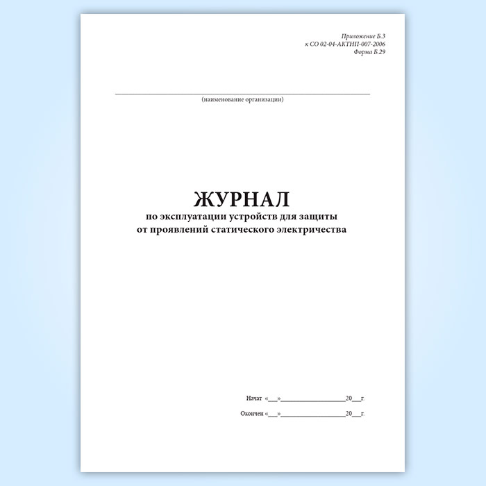 Журнал по эксплуатации устройств для защиты от проявлений статического электричества (форма Б.29) в Твери купить