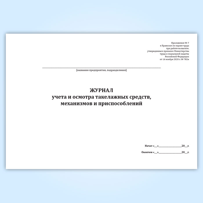 Журнал учета и осмотра такелажных средств, механизмов и приспособлений (Приказ Минтруда России от 16.11.2020 N 782н) в Твери купить