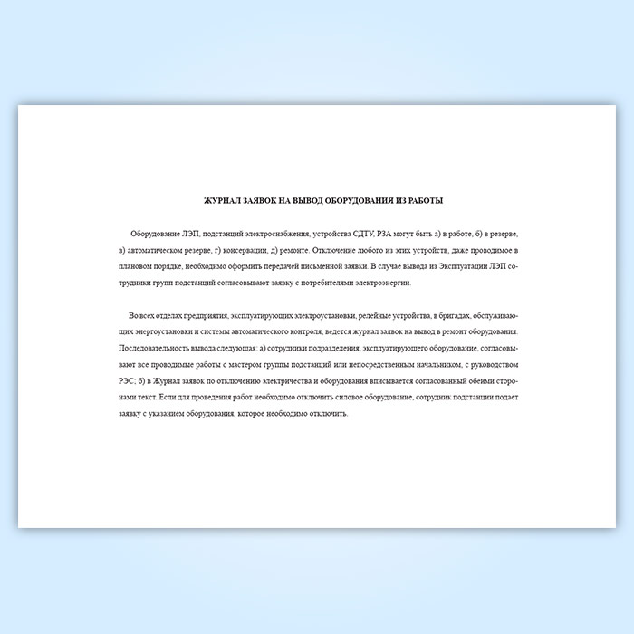 Журнал заявок на вывод оборудования из работы в Твери купить