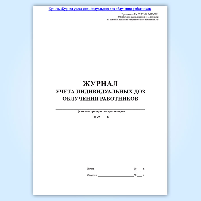 Журнал учета индивидуальных доз облучения работников в Твери купить
