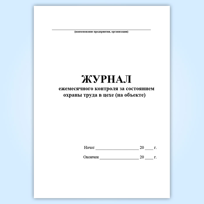 Журнал ежемесячного контроля за состоянием охраны труда в цехе (на объекте) в Твери купить