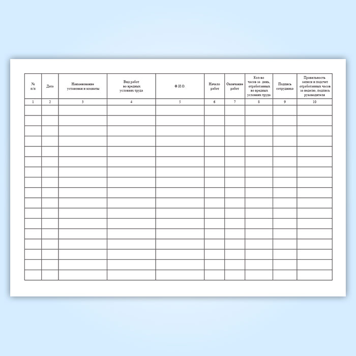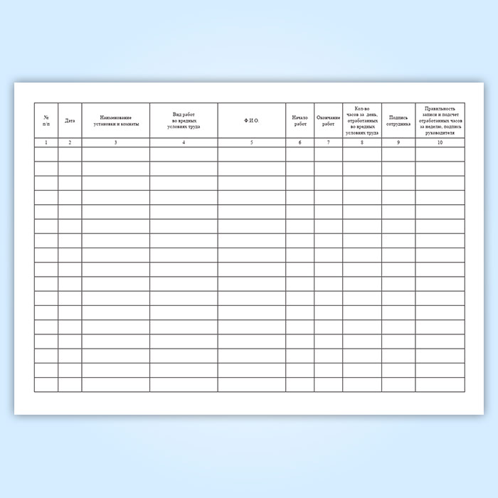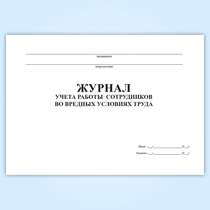 Журнал учета работы сотрудников во вредных условиях труда в Твери купить