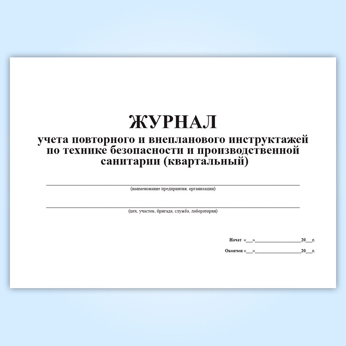 Журнал учета повторного и внепланового инструктажей по технике безопасности и производственной санитарии (квартальный) в Твери купить