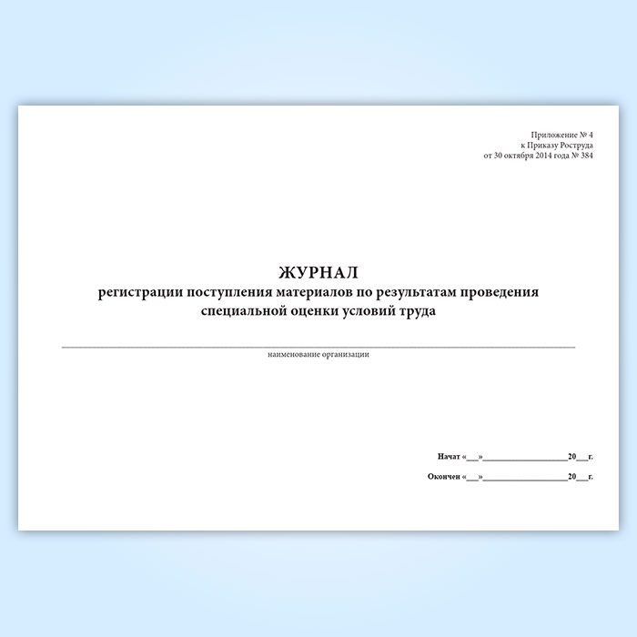 Журнал регистрации поступления материалов по результатам проведения специальной оценки условий труда в Твери купить