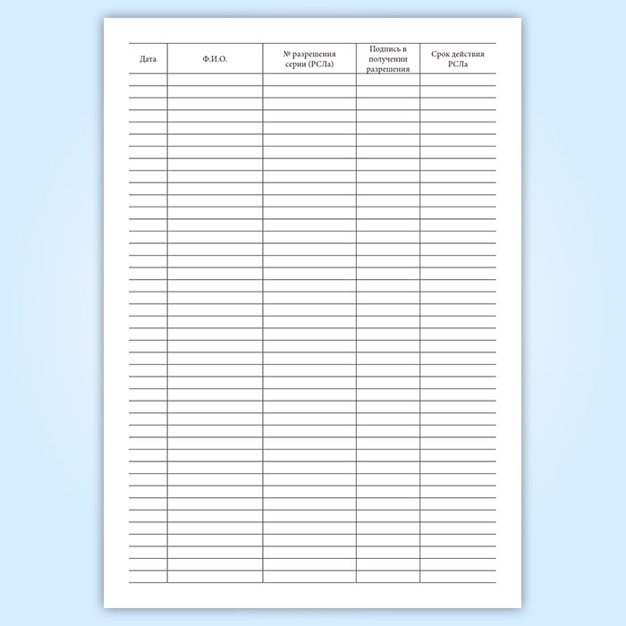 Журнал регистрации и выдачи поступающих разрешений на хранение и ношение огнестрельного оружия (РСЛа) в Твери купить