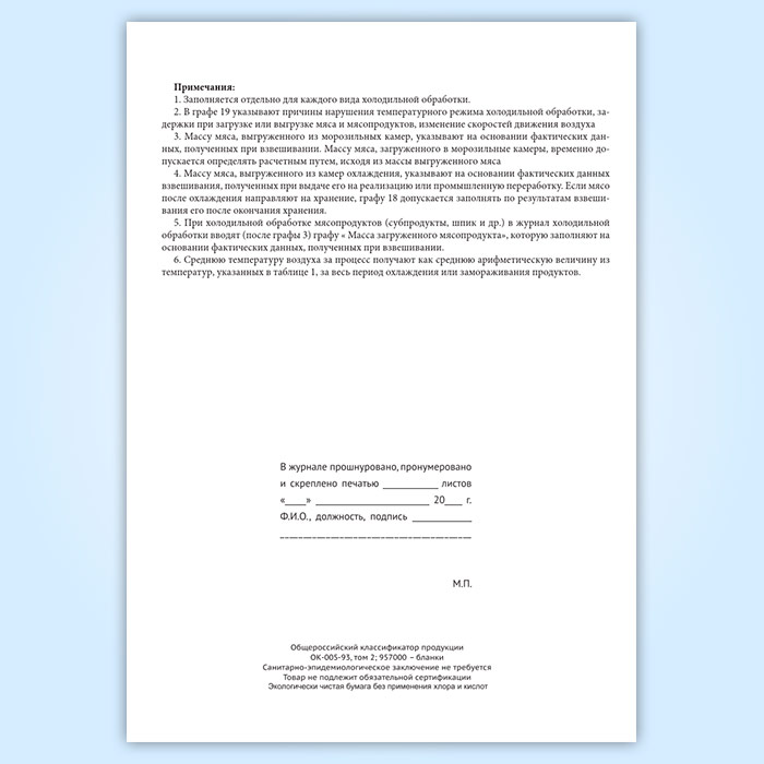 Журнал холодильной обработки мяса и мясопродуктов в камерах охлаждения и замораживания в Твери купить