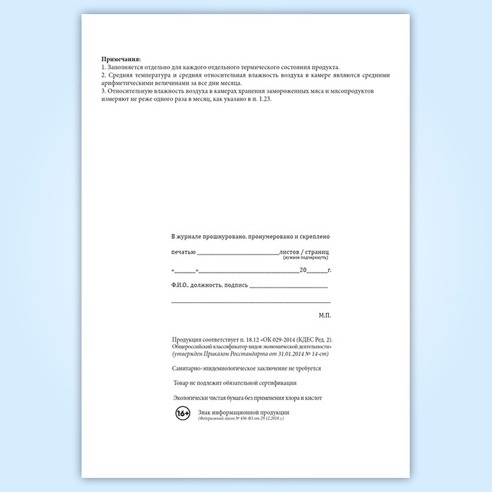Вы получаете печатную продукцию прошнурованной и c местом для вашей печати в соответствии с действующими нормативными документами: