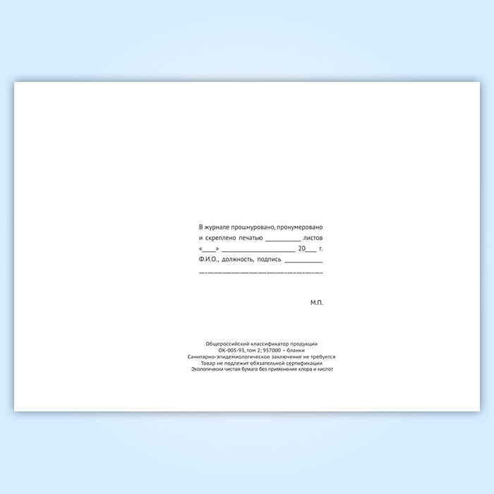 Вы получаете печатную продукцию прошнурованной и c местом для вашей печати в соответствии с действующими нормативными документами: