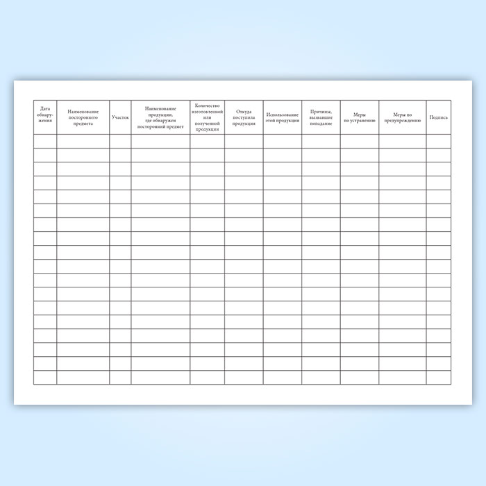 Журнал учета посторонних предметов и включений, обнаруженных в сырье, продукции на производственных участках в Твери купить