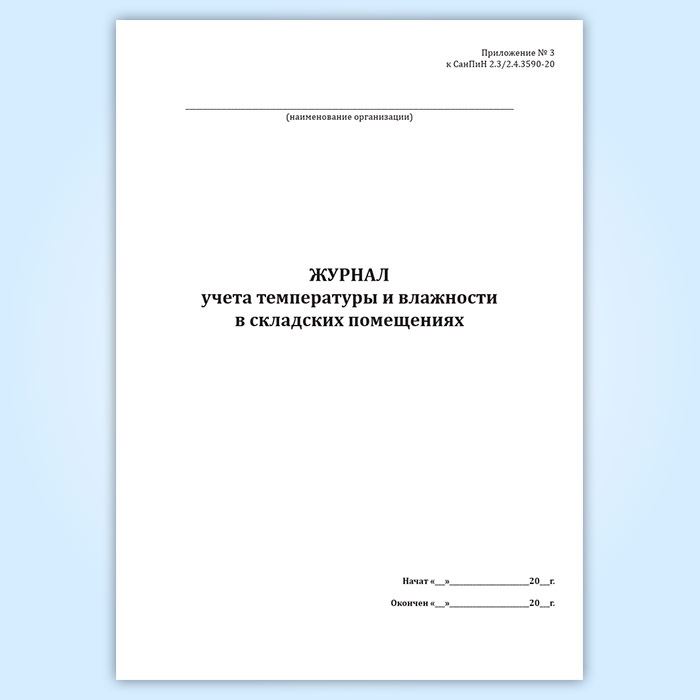 Журнал учета температуры и влажности в складских помещениях (СанПиН 2.3/2.4.3590-20) в Твери купить