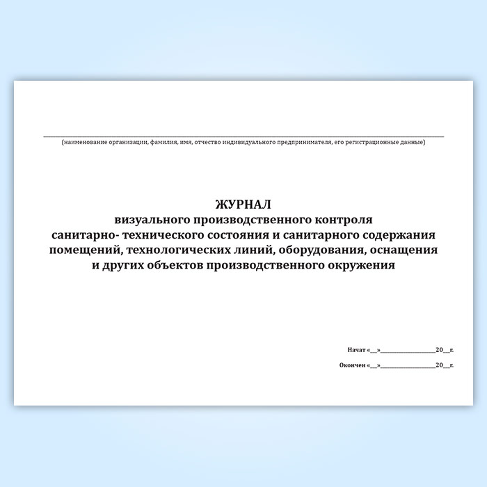 Журнал визуального производственного контроля санитарно-технического состояния и санитарного содержания помещений, технологических линий, оборудования, оснащения и других объектов производственного окружения в Твери купить