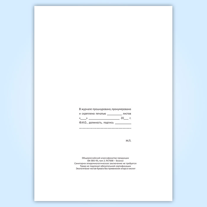Вы получаете печатную продукцию прошнурованной и c местом для вашей печати в соответствии с действующими нормативными документами: