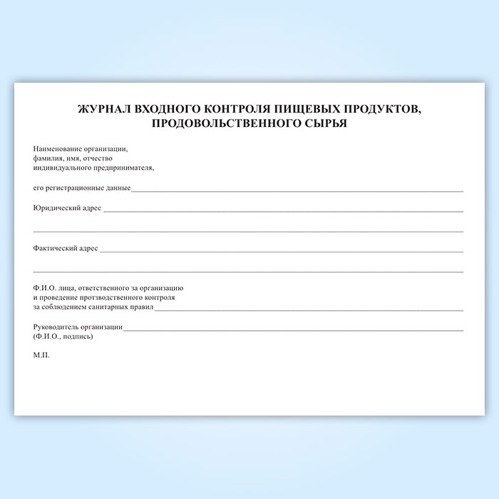 Журнал входного контроля пищевых продуктов, продовольственного сырья (бракеражный журнал поступающих на пищеблок продуктов) в Твери купить