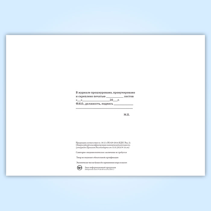 Вы получаете печатную продукцию прошнурованной и c местом для вашей печати в соответствии с действующими нормативными документами: