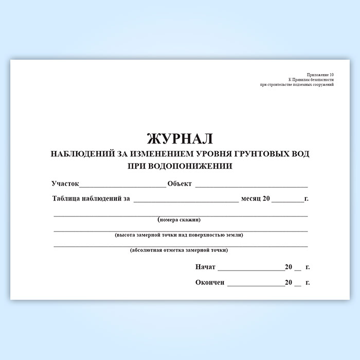 Журнал наблюдений за изменением уровня грунтовых вод при водопонижении в Твери купить