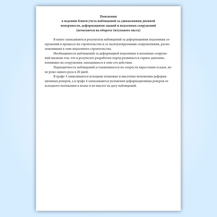 Книга учета наблюдений за сдвижениями дневной поверхности, деформациями зданий и подземных сооружений в Твери купить