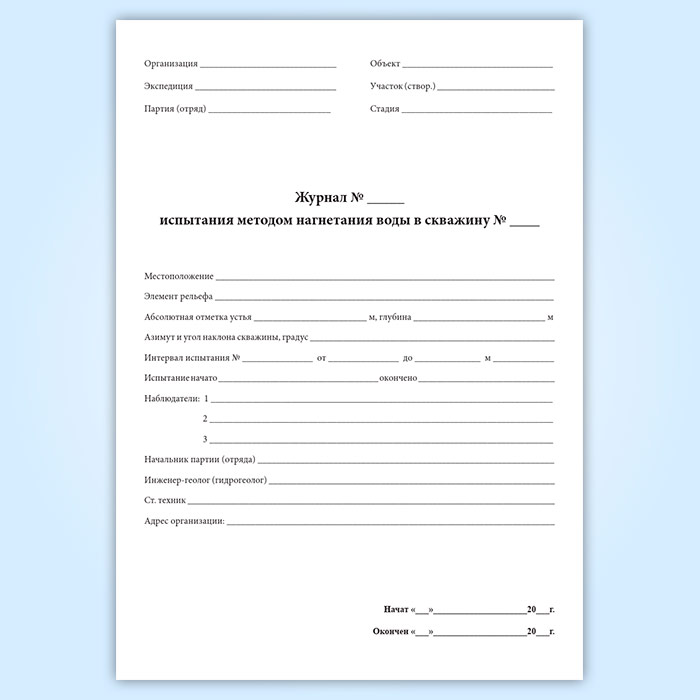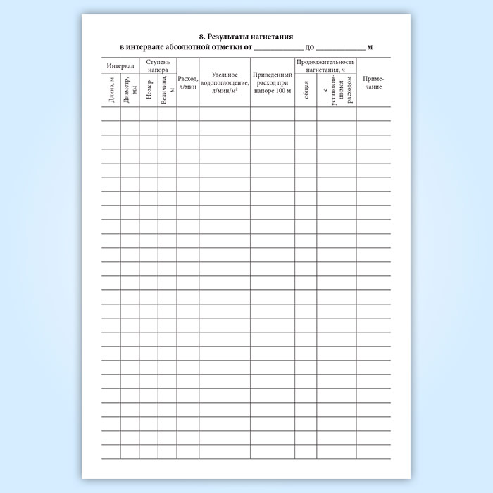 Журнал испытания методом нагнетания воды в скважину в Твери купить