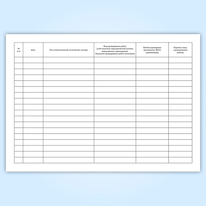 Журнал учета наличия, периодического осмотра и перезарядки огнетушителей в Твери купить