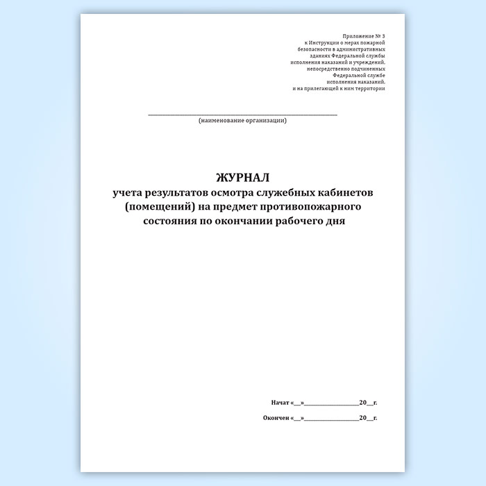 Журнал учета результатов осмотра служебных кабинетов (помещений) на предмет противопожарного состояния по окончании рабочего дня в Твери купить