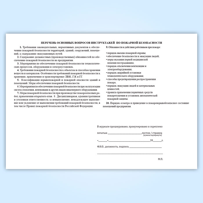 Журнал регистрации инструктажей по пожарной безопасности в Твери купить
